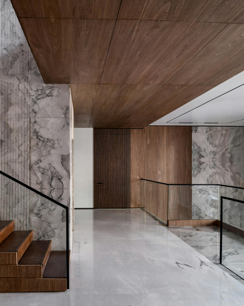 Modern Deco Interiors approached the project with restraint and precision: restoring original moldings, introducing bold geometric lines, and layering soft neutrals with accents of brass and marble. The result is a home that feels both timeless and new — sophisticated yet inviting.